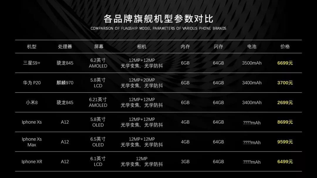 再给一张图,让大家横向对比下各大品牌(苹果、三星、华为、小米)最新的旗舰机参数对比。