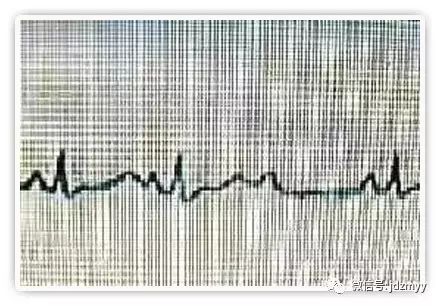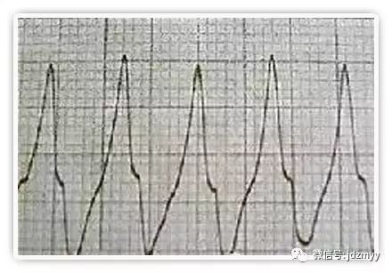 7、阵发性室性心动过速---特点:没有正常波形,可见宽大畸形的QRS波及深的T波,有点像拉开的弹簧一样一圈一圈的。