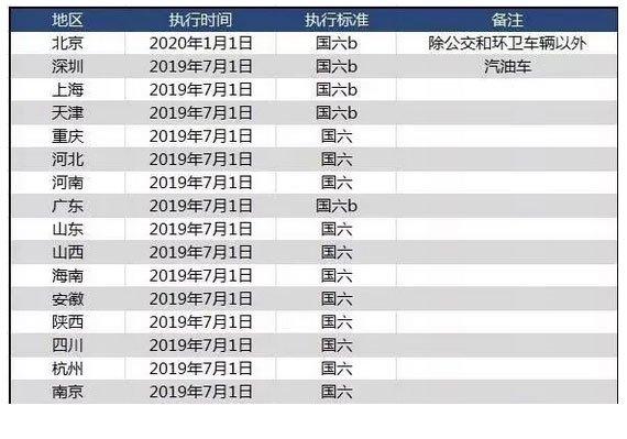 国家将“国六标准”分为“国六a”和“国六b”两个阶段,并计划分别于2020年和2023年在全国统一实施。但很多地区提前实施了国六标准,以广东省为例,2019年7月1日起,广东省新注册车辆必须符合国六排放标准,届时市面上只有国六标准新车,并且异地转入车辆也要符合国六标准。所以下面这些省份,7月1日后,国五车就没法上牌了。(其余省份以当地政策为准。)
