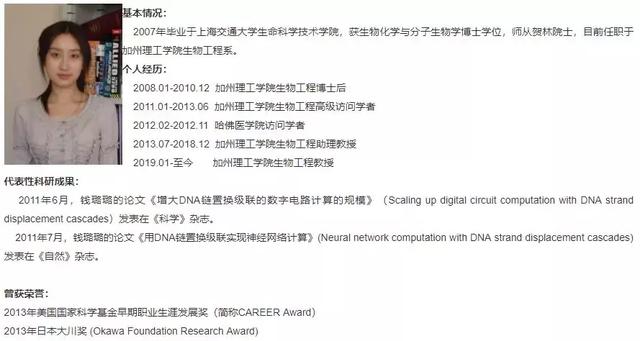 Winfree同样也是加州理工大学的教授,据传,钱璐璐能如愿入职加理工与Winfree的付出有着不可分割的关系。