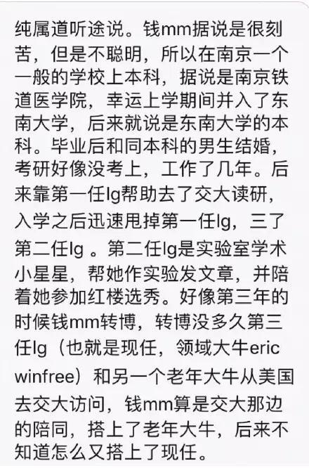 关于钱璐璐的瓜,比起复旦女博来说有过之而无不及,甚至有人说复旦女博就是在模仿钱璐璐。