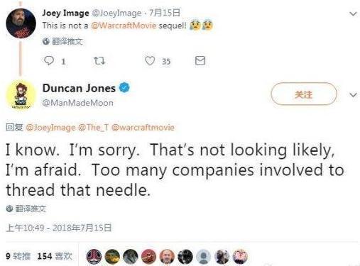 就如《魔兽》的导演邓肯琼斯在推特回复粉丝关于《魔兽》第二部的问题,恐怕,不太可能有第二部了。