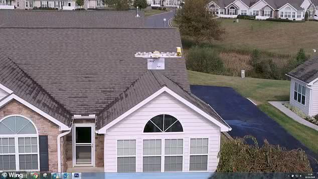 Alphabet在弗吉尼亚州小镇基督堡正式启动无人机送货服务项目“翅”。图为送货的无人机。