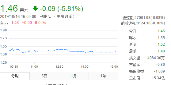此消息曝出后,蔚来汽车股价下跌5.8%,报1.46美元。