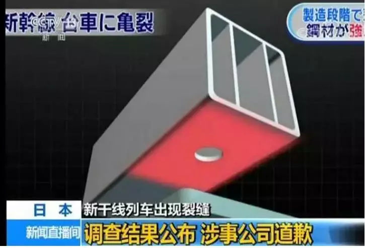 针对日本新干线列车的车架发现14厘米裂缝这一“重大安全隐患”,西日本铁路公司2月28日公布调查结果表示,是车底钢材不符规格,强度不够所导致的。
