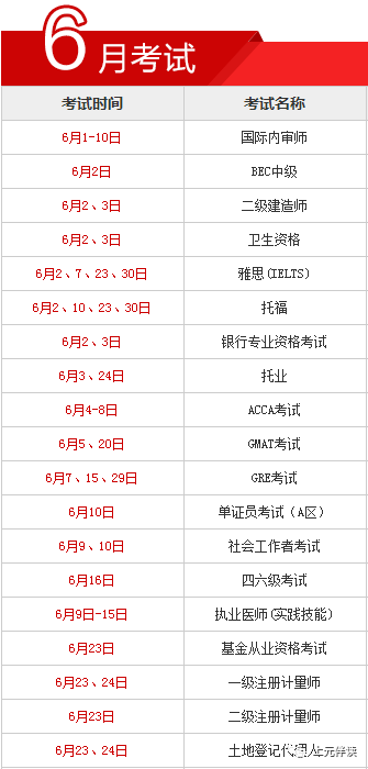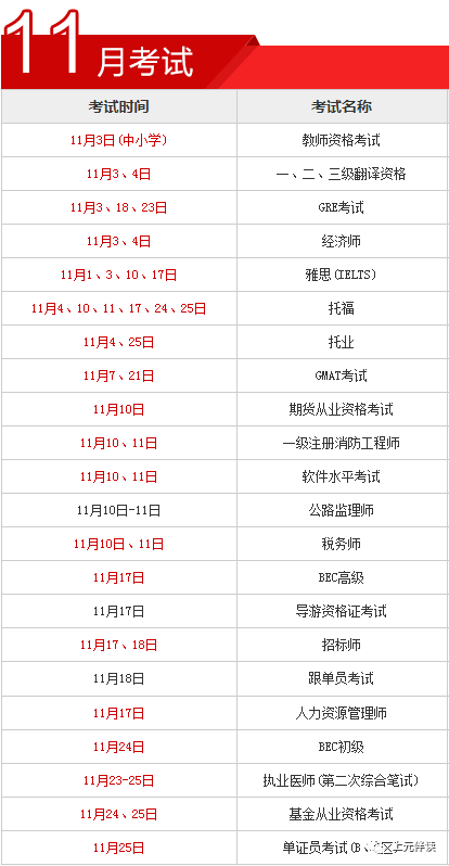 大家可以按照此表进行复习备考安排,具体的报考信息可以搜索各个考试的官网查看哦~