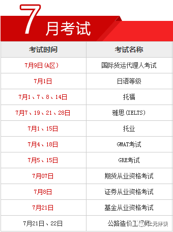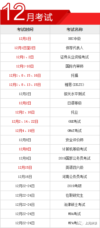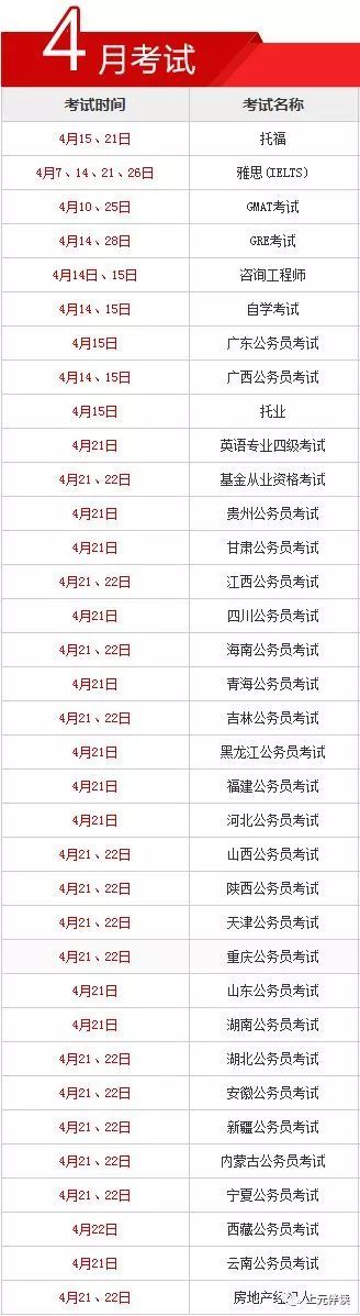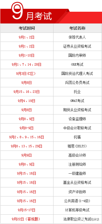 以下时间表每年在具体日期上会有一些变动,但大体的考试时间段不会差太多。