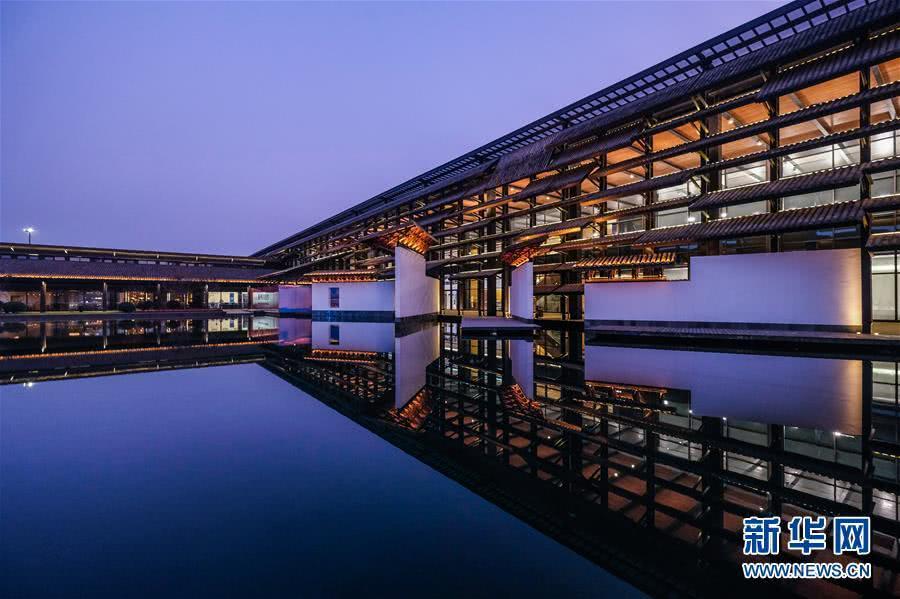 这是10月19日拍摄的乌镇互联网国际会展中心夜景。 第六届世界互联网大会将于10月20日至22日在浙江乌镇举行。本届大会以“智能互联 开放合作——携手共建网络空间命运共同体”为主题,在全球范围内邀请1500余位嘉宾围绕创新发展、网络安全、文化交流等议题进行探讨交流。 新华社记者 徐昱 摄