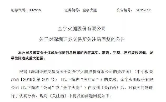本月18日,在推出“人造肉”产品后股价5天涨停的金字火腿,对深交所关注函作出回复。称不存在“公司重大信息披露不及时”的情形,同时表示,他们没有主动迎合市场热点、炒作公司股价。