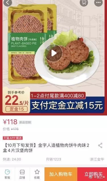 从概念到商品,在2019年,“人造肉”在市场上高歌猛进。本月,A股上市公司金字火腿与美国杜邦公司合作生产的国内首款人造肉饼在现场开启预售,核算价格每100克26元。不少围观网友吐槽,这个价格已经是真肉价格的4—6 倍。