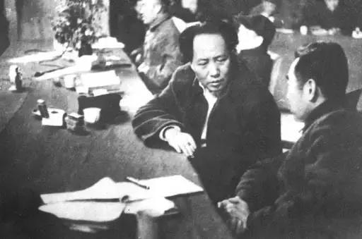 ◆毛泽东和周恩来在“七大”主席台上。会议确定把毛泽东思想作为中国共产党的一切工作的指针。