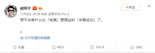 起因是褚明宇发了一条“没什么比电竞更屌丝的体育运动”的微博,8号发的,本来没什么水花,这位博主的百万粉丝可能是摆设。直到若风看到了这条微博,于是礼貌性回复转发,很多电竞从业者更是采用模仿句式,进行回怼,不卑不亢。