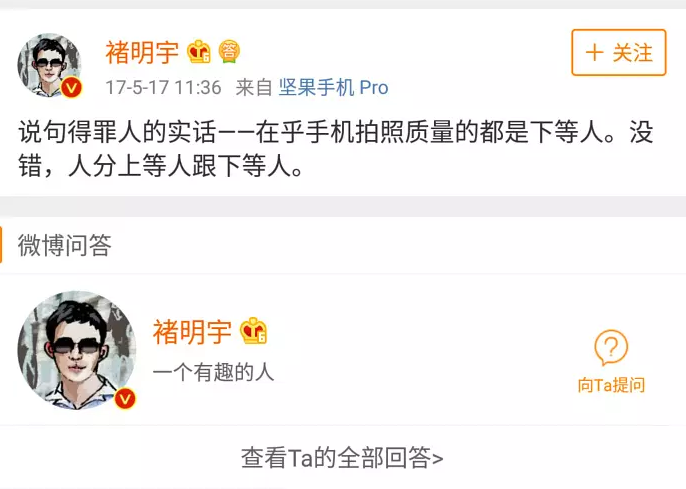 怎么好好的家世背景,到褚明宇老师这里就变成了一个只能靠卖自己下限博取关注的所谓大V呢?百万粉丝的博主,平时微博评论不过百,还要删掉一半不好的评论,近万人围观的微博问答也只有可怜巴巴的三个打赏。