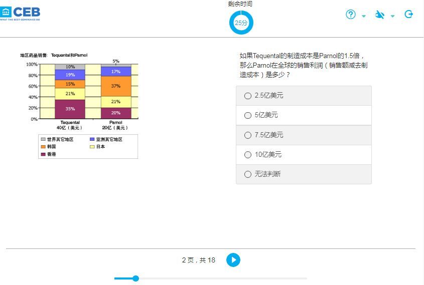 CEB系统的逻辑推理,时间是25分钟,24道题,学委认为是最简单的部分,可能学委的逻辑能力比较好。