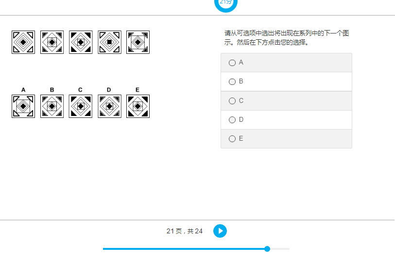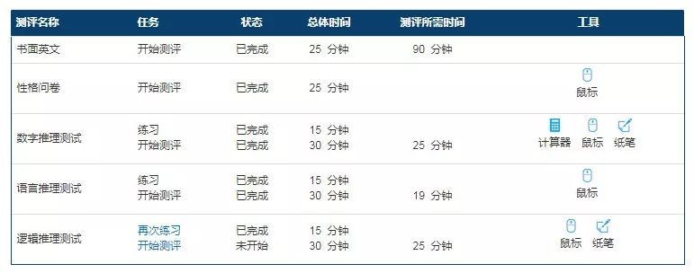 网测共分成5部分:数字推理、语言推理、逻辑推理、书面英文、性格测试。