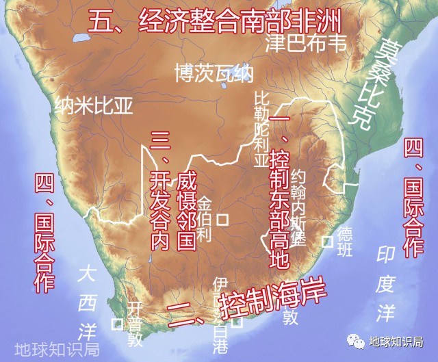 一、控制南非内陆的东半部高地,南非起家于开普殖民地,但核心却位于内陆高地。