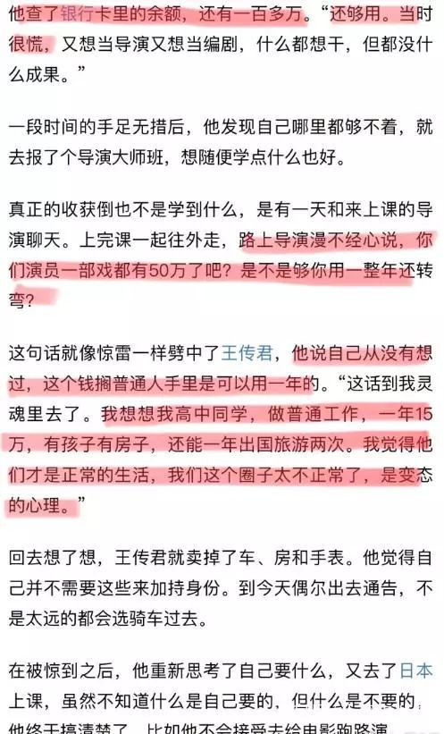 不妨再说说演员王传君,前段时间,他因为账户里只剩下100万元而焦虑。
