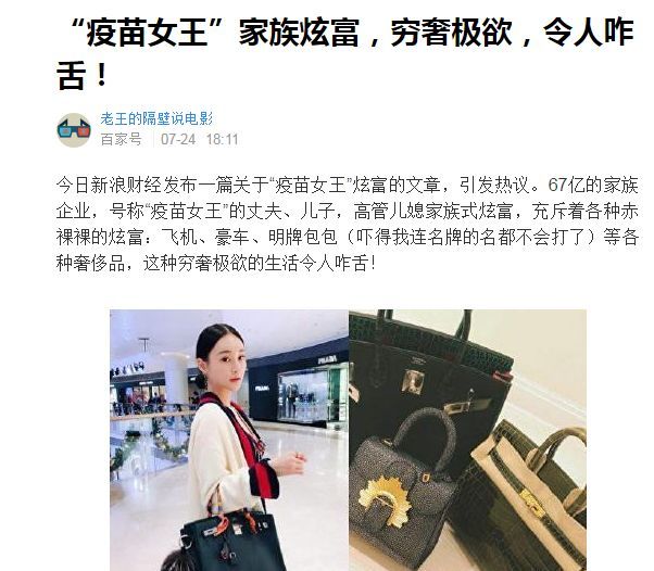 最新的炫富女,是这位,长春长生生物的董事长高俊芳的儿媳。可惜,带血的财富来得并不光彩。