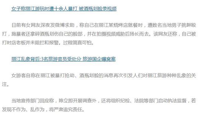 枣庄招商国旅小编了解到24日,有网友发微博称2016年11月在丽江旅游期间,被一群陌生人暴打。云南省公安厅官方微博今日转发该网友微博并回应,称丽江市公安局已成立工作组对相关情况进行调查处理,调查结果将及时向社会公布。25日中午,丽江市公安局新闻办发布通报称:目前,案件事实清楚,主要嫌疑人已被警方控制,案件正依照法律程序办理中。