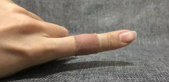 贴好后看看效果,伤口被完全包覆住,再也不用担心二次受伤了。而且关节部分也空了出来,手指可以自由弯曲,哪怕受伤了也丝毫不会影响手指活动哦。