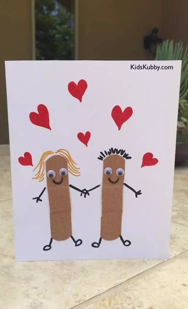 ▼将创可贴贴在自制贺卡上做装饰,让没有美术功底人也能轻松做出别出心裁的贺卡~