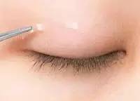 step1:把肉色或者透明的创可贴沿着弧度剪下来,可以根据自己的眼型调整。