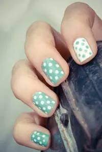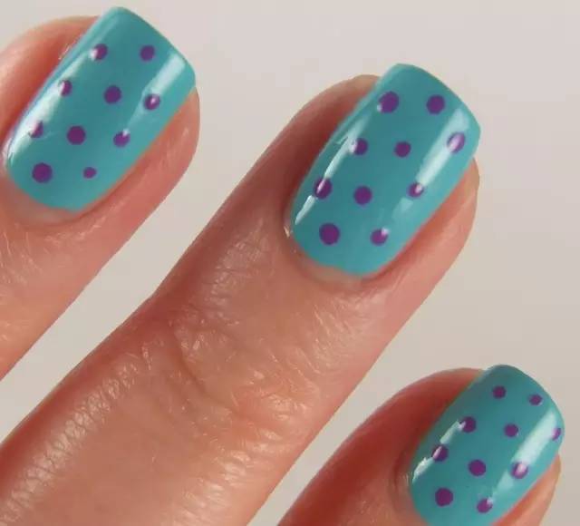 step3:然后涂上你想画的波点颜色,指甲油会透过气孔涂在指甲上。