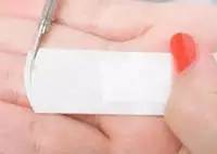 step1:先在创可贴上剪出来,然后贴在指甲上。