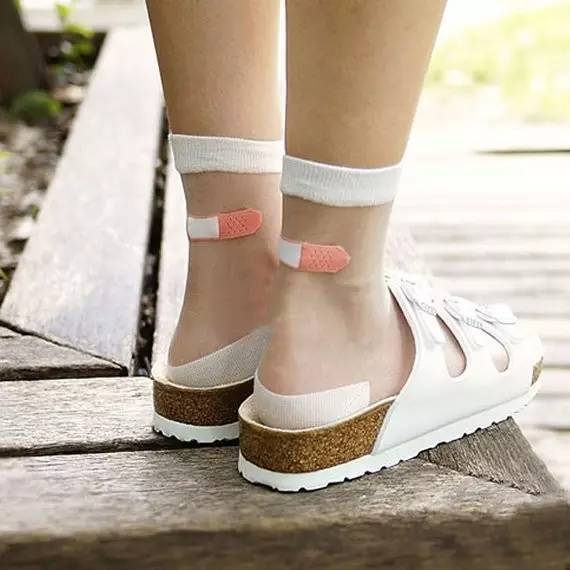 ▼可以把自己的创可贴贴在丝袜里,再穿上脚。这样可爱的设计大概出发点是要打造一种柔弱的软妹萌感吧~
