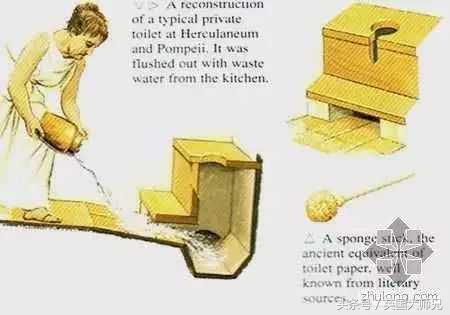 其实就是个绑了海绵的棍子,然后从那个洞下面长条状的孔塞进去擦,而下面那个孔洞是用来冲厕所的,罗马下水系统很发达,一般就把厨余的水倒进去,然后就给冲了。