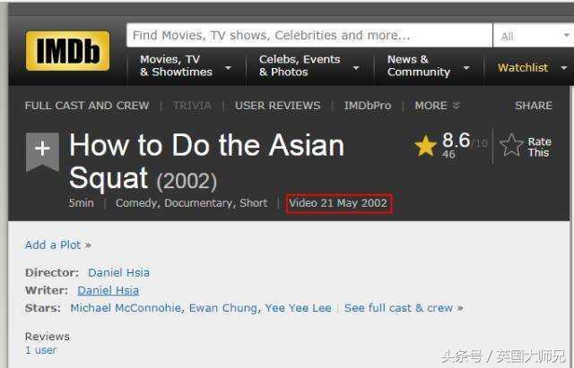 第一个上的是02的一个小伙子,拍了个视频叫《如何亚洲蹲》,在IMDB上面8.6的高分评价啊!