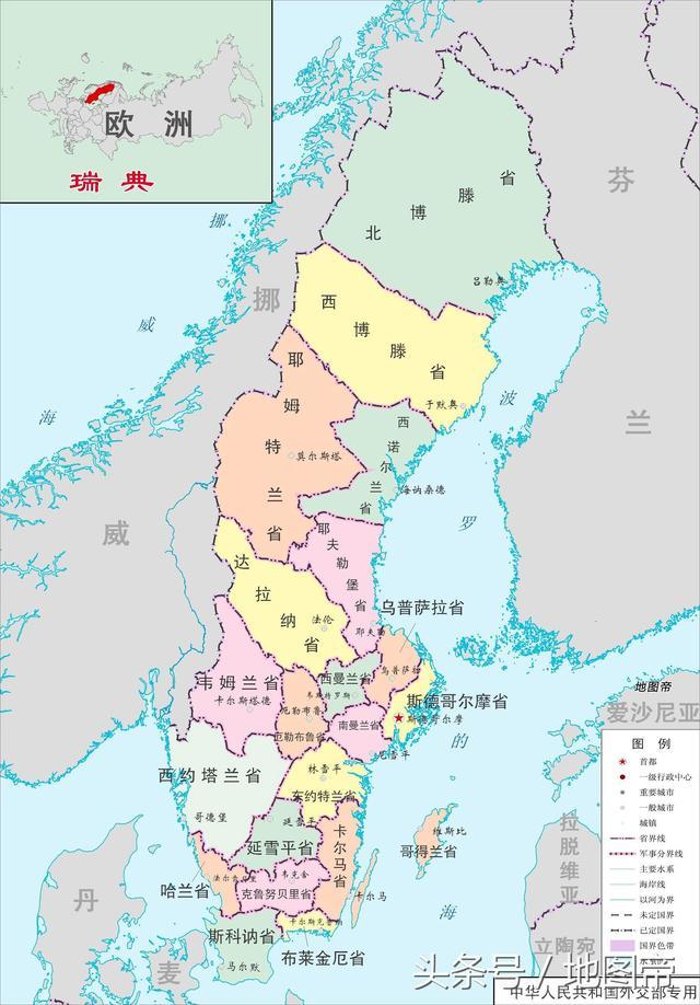 瑞典位于欧洲北部,和瑞士之间隔着德国和丹麦两个国家,是一个临海国家。领土和丹麦、芬兰接壤,东部濒临波的尼亚湾和波罗的海,西南为北海。面积45万平方公里,和甘肃省差不多,是瑞士面积的11倍,人口超过1000万。