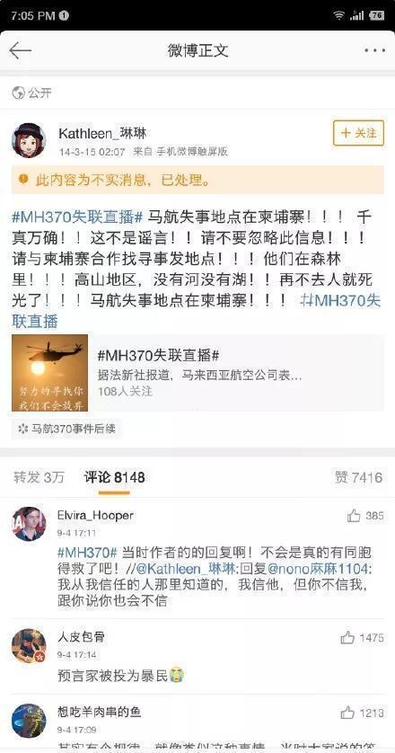今天有关马航370的残骸出现在柬埔寨密林的消息上了热搜。如果只是单纯这一则消息其实并不足以刷屏。