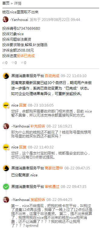 nice平台问题频出,也不是一两次了,在黑猫上可以找到大量关于nice各种问题的投诉。如售后问题无法及时解决、平台提现出现限制、品控差等等。
