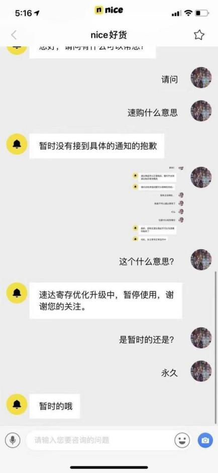 最后,有相关用户询问客服,目前“速达”的“寄存(寄售)”业务具体情况,而得到的回答是“只是暂时下线,并非永久关停”。由此看来,速达“升级”为以前的“寄售”模式也并非没有可能。