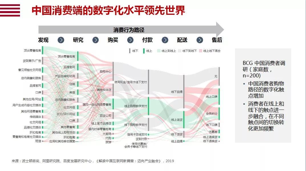 中国消费端的数字化习惯推进了前端消费侧的数字化进程,并在消费者生活、工作、学习、娱乐等各个场景里不断提高数字化的程度。