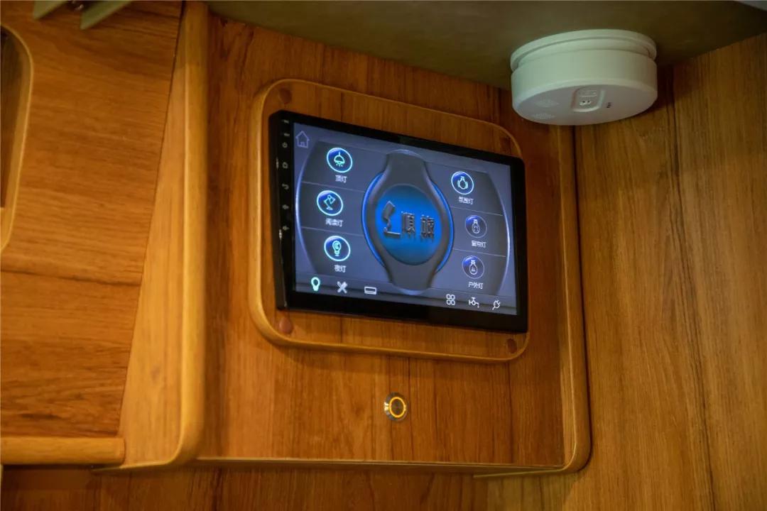 厨房顶部提供了一个触控面板,可以对车上的水电灯等设备进行操控。