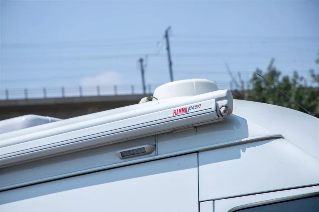 车身外部加装了部分房车专属设备,例如遮阳棚、车顶爬梯、自行车托架、车顶行李架、外置淋浴花洒等,在同类型房车中表现中规中矩,能够满足日常使用。