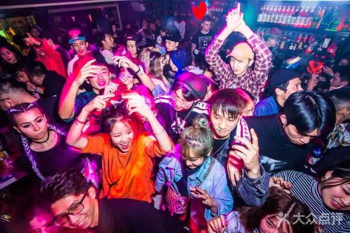 HIPHOP风格的酒吧,装修大气,天花板是白色蜂窝状装饰,各种颜色变换不停,充满迷幻,还有MTV播放机,制造不同效果,场面酷炫到飞起,最潮夜场,年轻人嗨到爆,DJ节奏超级棒,让人控制不住扭动热舞,外国人居多,让人误以为身在国外,型男索女齐聚一堂,热浪翻天。
