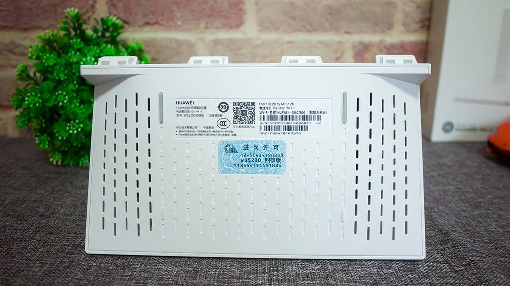 路由器参数往往标识在路由器的底面,华为WS5200路由器也是如此,中间参数两旁为便于散热的散热孔,而且背面边缘处越有一定的弯曲弧度,加速散热,利用路由器性能持久。