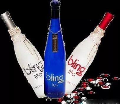 取自美国田纳西州的大云雾山,玻璃瓶表面用64颗施华洛世奇水晶手工镶嵌而成,软木塞封口,瓶身上注明了水的PH值、溶解固体含量,甚至还介绍了每种水的历史。一瓶BlingH2O最高售价达9 0美元。水店开在了著名的贝佛利山庄,使好莱坞明星都成为他们的常客。
