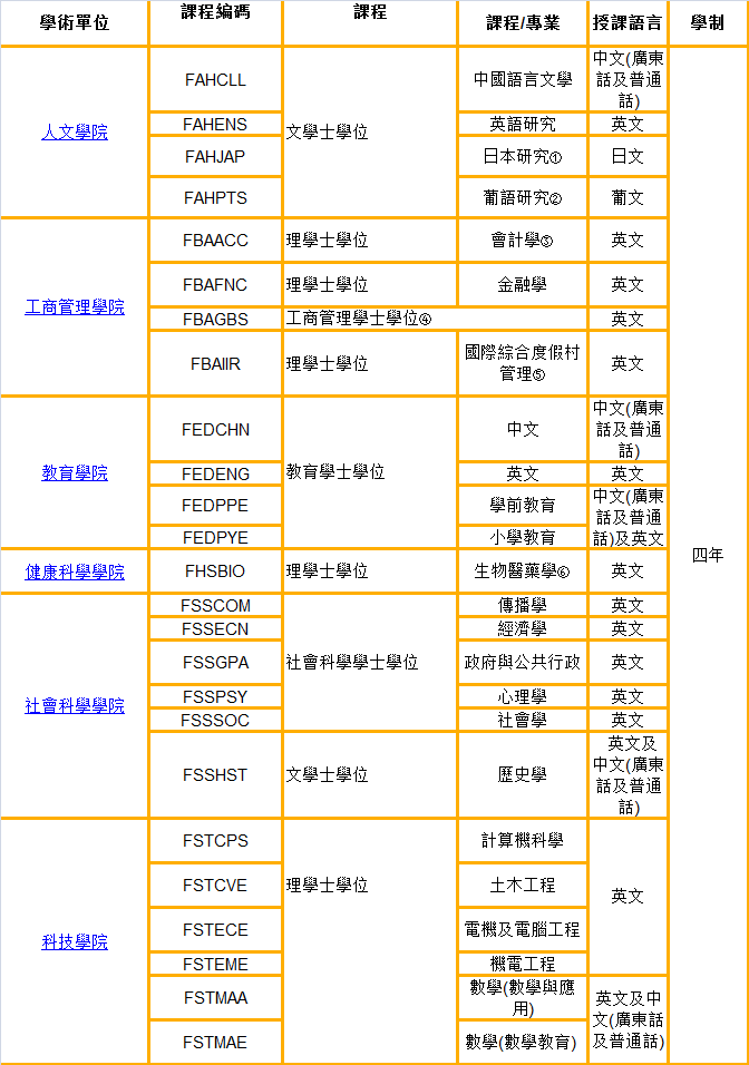 ★ 除报读健康科学学院「理学士学位课程(生物医药学)课程」之学生必须于高中阶段修毕化学及生物两门科目外,本校其他专业皆文理科学生兼收。另外,因应科技学院各课程之教学内容设置,理科生较适宜入读该学院的课程。