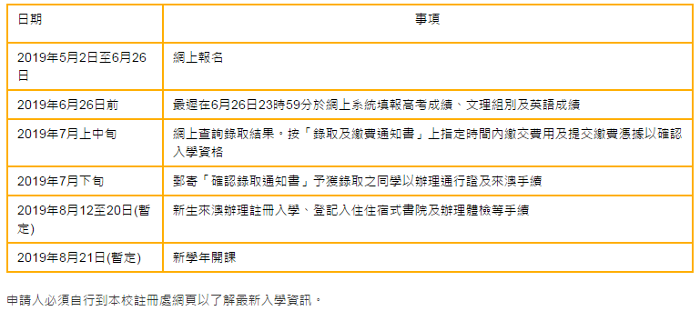 ★录取后课程如仍有收生名额,校方将于2019年7月下旬前作补录。
