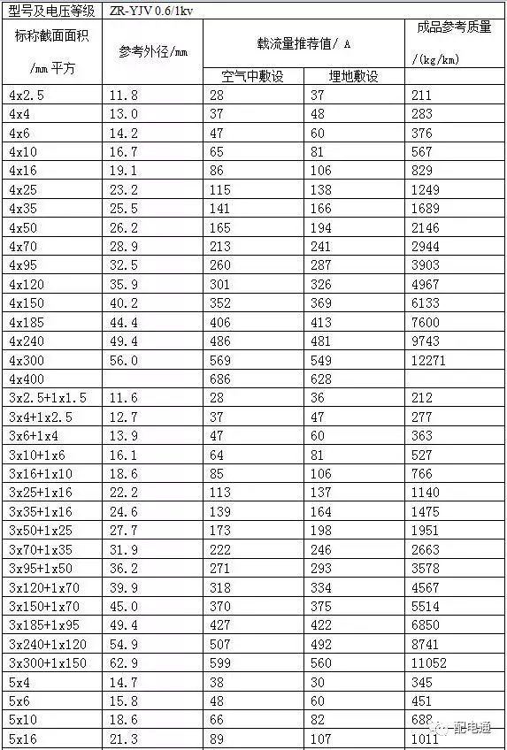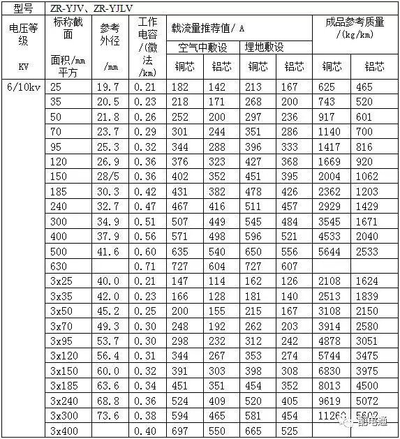 6ZR-YJV电力电缆载流量表
