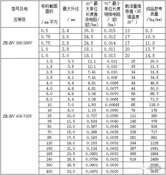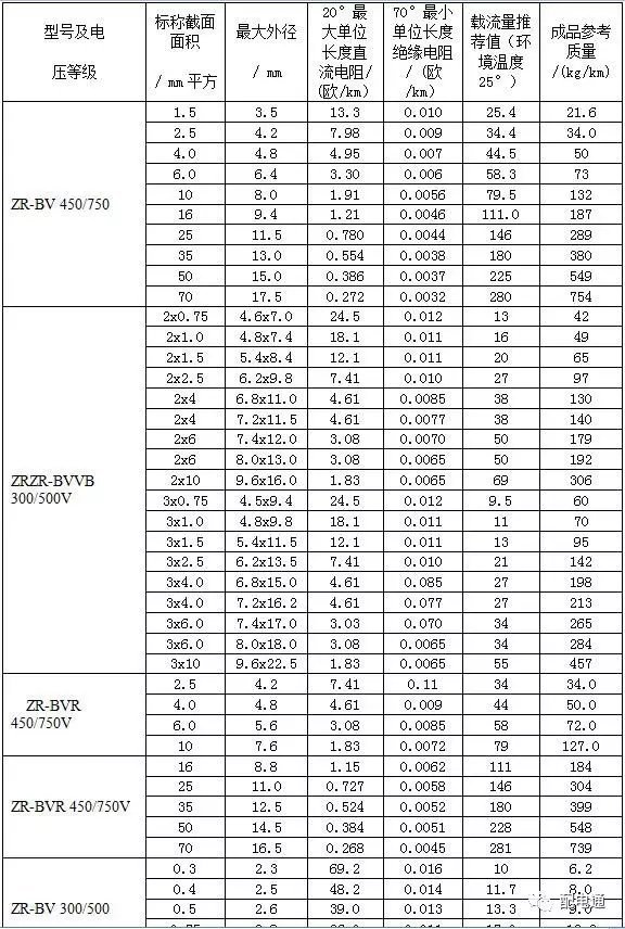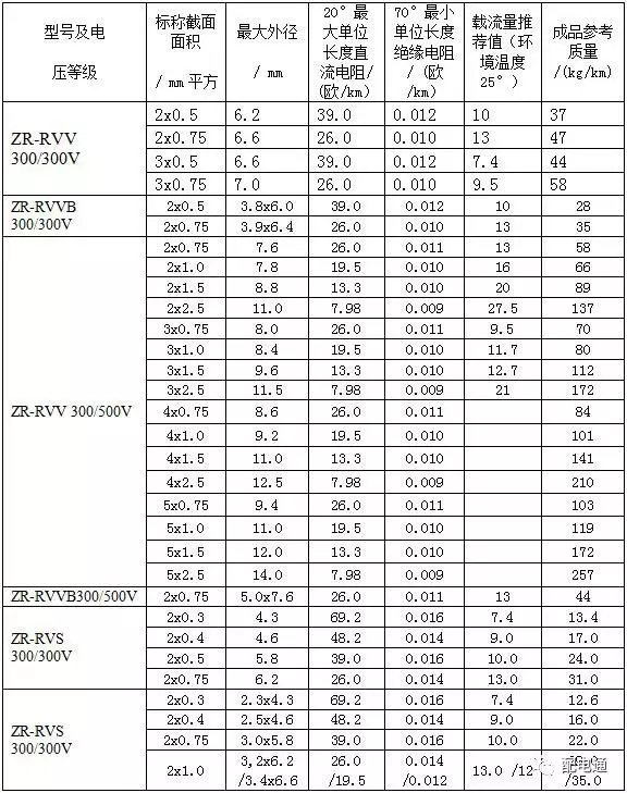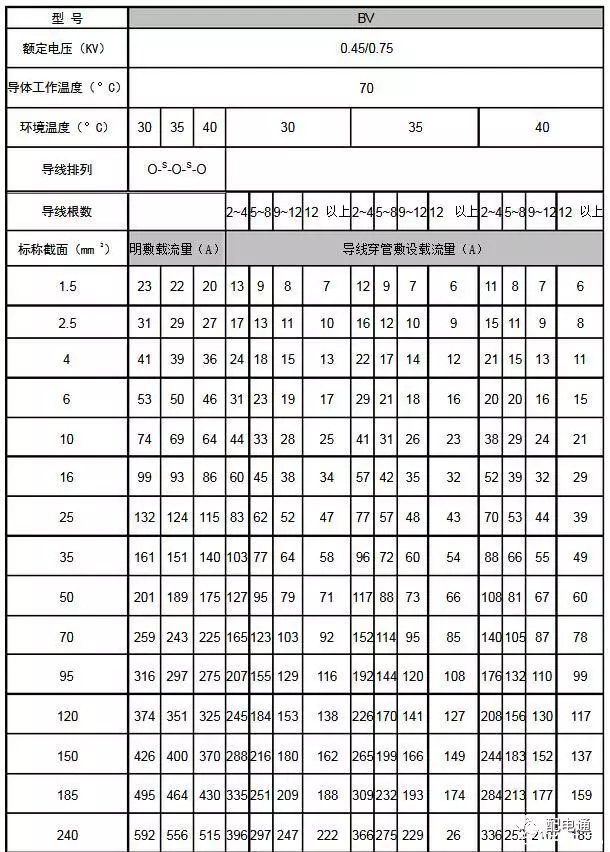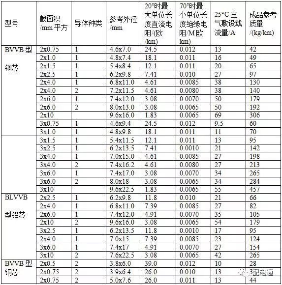 3常见BV线、BVVB型、BLVVB型、RVVB型电线载流量