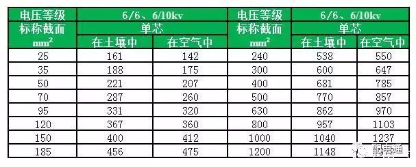 YJV、YJY、YJV22额定电压在6/6、6/10kv电缆载流量