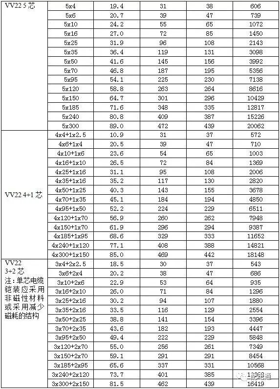 常用型号VV22、VLV22聚氯乙烯绝缘钢带铠装聚氯乙烯护套电力电缆载流量