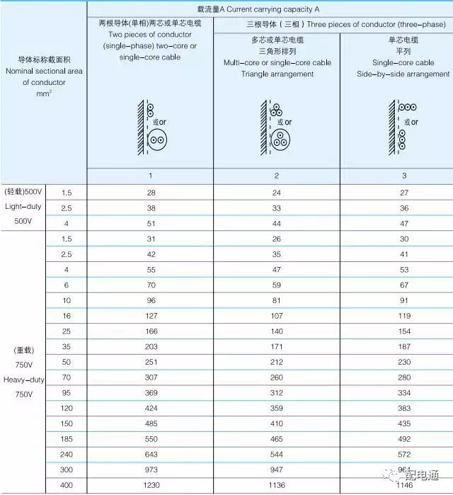 注:表中计算值为铜芯载流量。铝芯载流量为铜芯的1/1.29倍