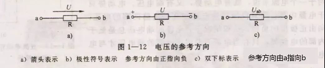 电压的参考方向有三种表示方法,如图1——12所示。