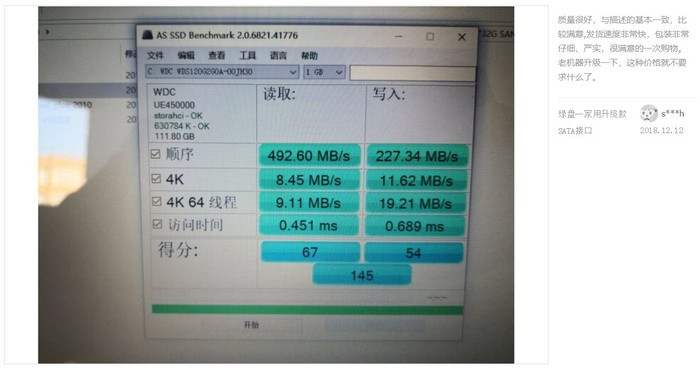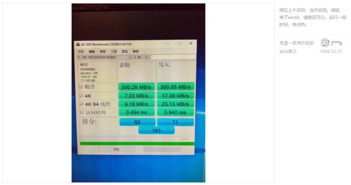完了我再去电商平台找一些买家秀看看,确定不是个案,很多人反馈的速度都和我手上的这个差不多,我这个还强一丢丢呢,运气真棒(滑鸡)。